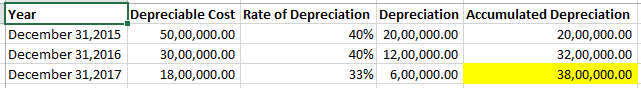 Accumulated depreciation for the equipment as on December 31,2017 = P38,00,000