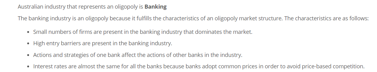 Choose an Australian industry that represents oligopoly. Justify your example by relating them to the characteristics of an oligopoly market.
