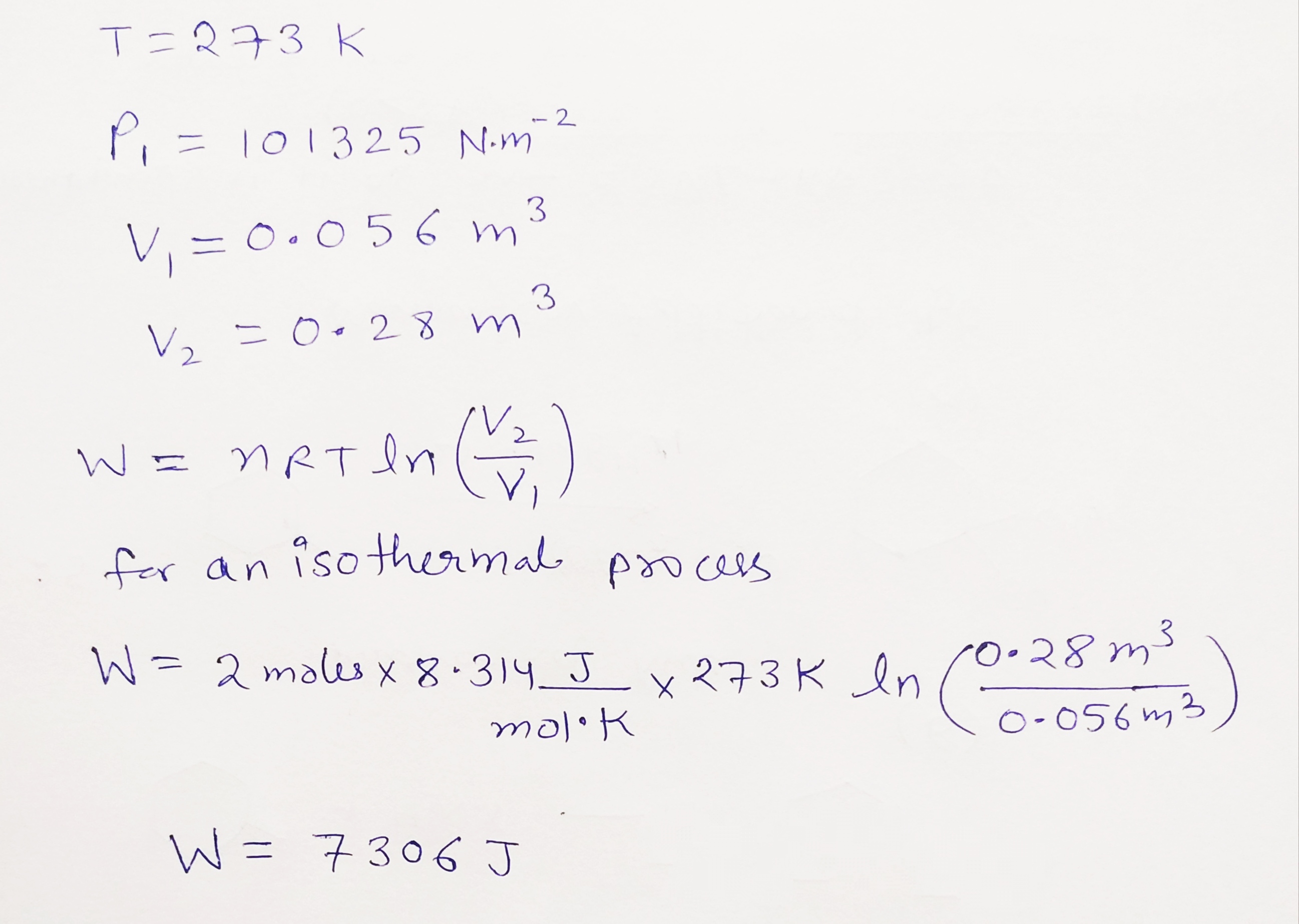 question archive Two moles of an ideal gas at 273 K and 101325 NM-2 pressure expand from 0