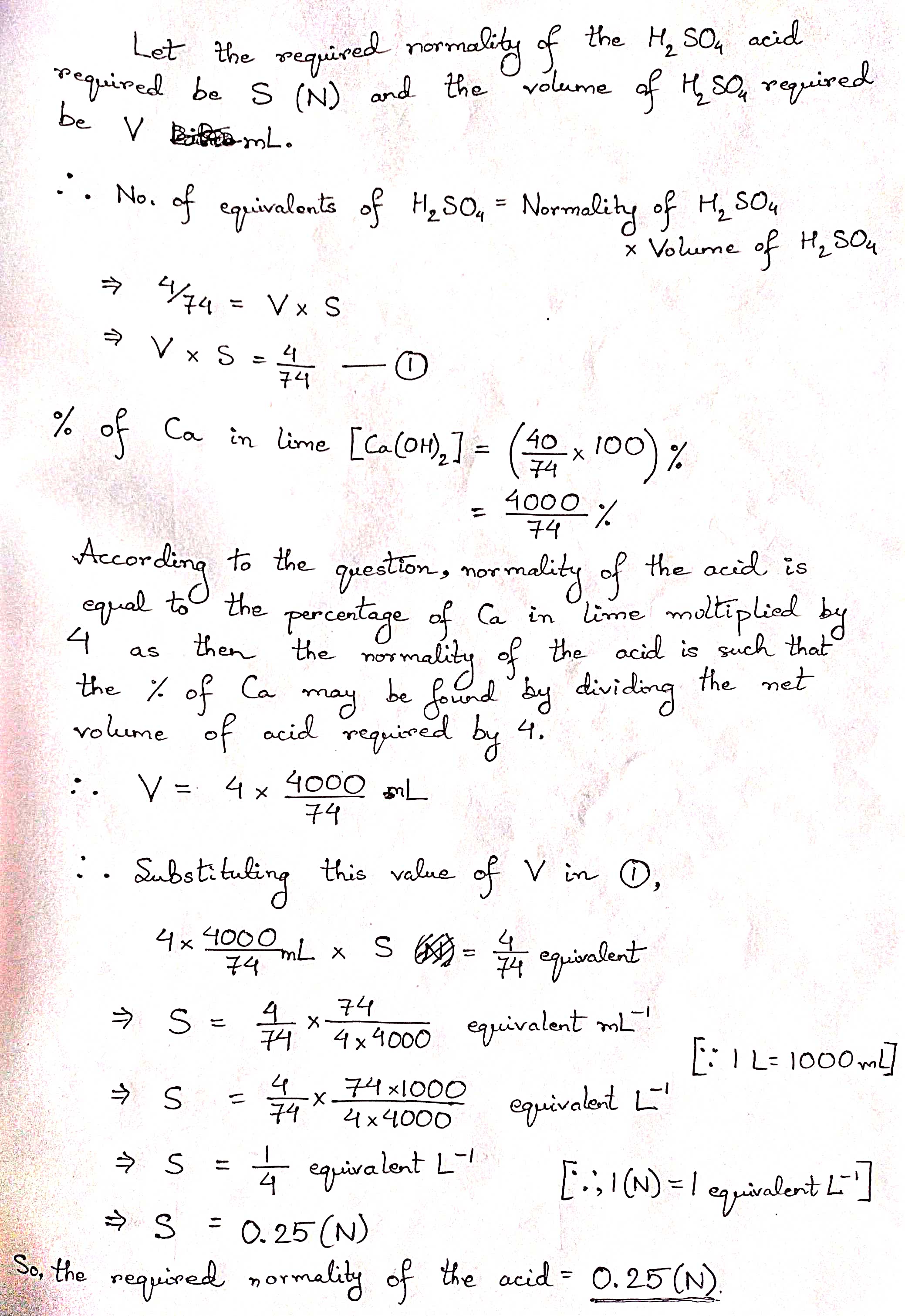 Therefore, no. of equivalents of lime provided= (2/74) × 2 = 4/74 equivalents
